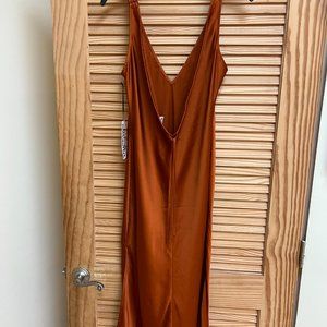 Future Collective dress. Women's Strappy V-Neck Midi Slip Dress. Rust color. 'Side slit. Brand new with tags, smoke pet free home.