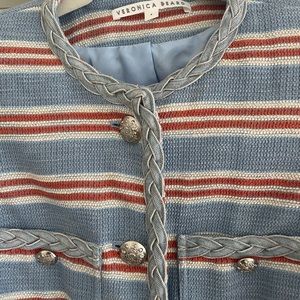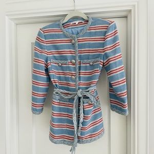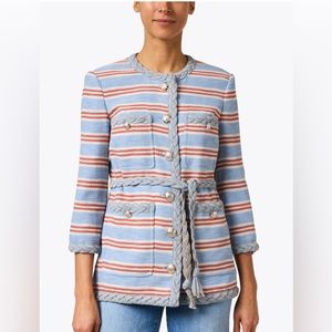 NEW Veronica Beard Striped Ginerva Belt Jacket Blazer, Blue/Red/White