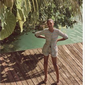 Three quarter sleeves keep this style breathable and easy. Wear it over denim or pair it back to its matching shorts for a modern suiting moment