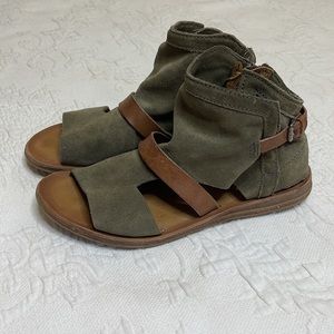 Miz Mooz Finney Gladiator Sandals Flats Shoes Green Suede Leather