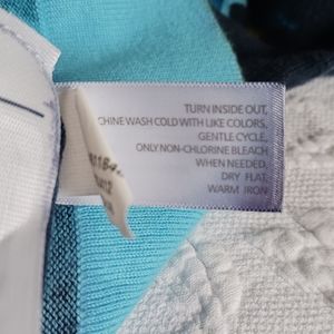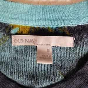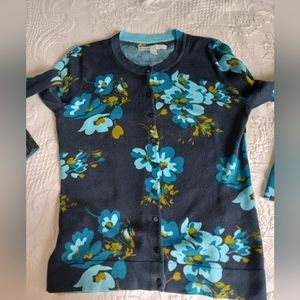 This pretty cardigan is navy blue with light blue and teal flowers.