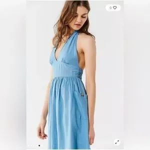 Urban Outfitters Betsey Niagara blue halter midi dress