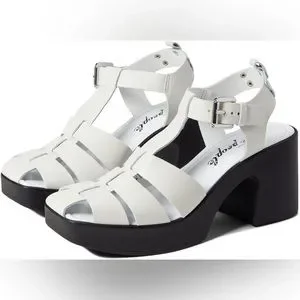 Look chic and confident wearing the Free People Pacific Platform Fishermen Heel Sandal. Leather upper. Leather lining and insole. Adjustable buckle strap closure. Lined footbed. Bold block heel. Durable rubber outsole.
