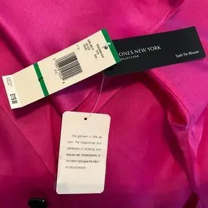 New with tags hot pink sash tie blouse by Jones New York Collection. 100 % silk. Size Large.