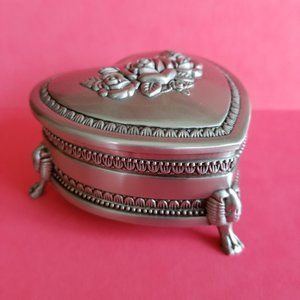 Forever Rose In A Heart Shaped Pewter Jewelry Box