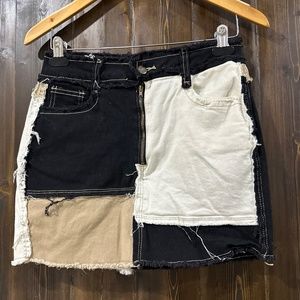 NEW/ NEVER WORN Color Blocking Patchwork Ripped Stretch Denim Skirt Size Medium