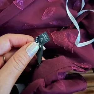 Burgundy Floral Jacquard Asymmetric Ruffle Chiffon Dress 🌿