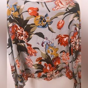 This is a very elegant piece in your wardrobe that can be dressed up or down. Vivid colors that can be matched with any solid color worn on the bottom. It has a beautiful flow of fabric which hardly gets wrinkled . It doesn’t fit me anymore💗
