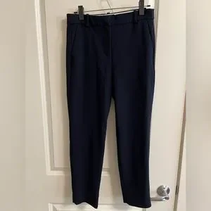Worn and loved, button will need to be replaced soon, pockets have been cut open, comfortable 4 way stretch fabric, navy color, ankle length