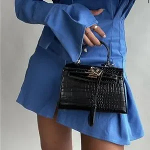 Princess Polly Peta and Jain Crocodile print black crossbody with gold hardware