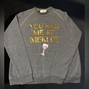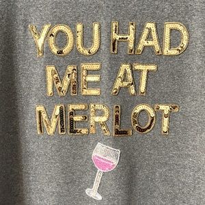 Super cute very very soft the tag extra large, but this is definitely a woman’s size medium super cute embellished with gold sequins and the wine glass is silver and pink sequins comes from smoke-free pet free, fragrance free home and beautiful gently used condition. Absolutely no flaws whatsoever. No stains no rips no weird smells.