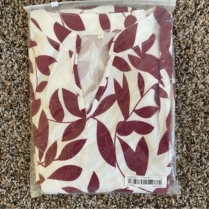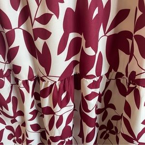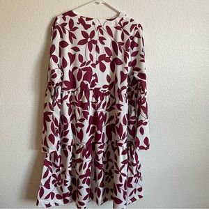 NWT Fall Long Sleeve Plant Print Dress in White and Burgundy Red Color.