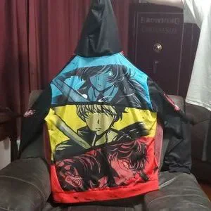 Persona Series Zip-Up Hoodie Multicolored (Red/Blue/Yellow/Black) with graphic design on front/back/sleeves, size 5XL Unisex, super soft fabric by brand DYKHMILY, unlicensed of popular video game series Persona by Atlus. New Condition. Hardly worn.