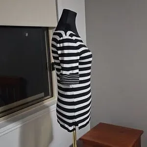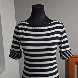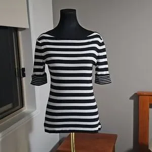 Ralph Lauren Cotton Black & White Stripped Ladies Top Size S. Sleeves ½-Length
