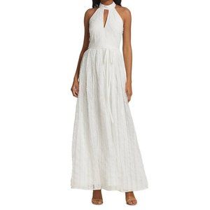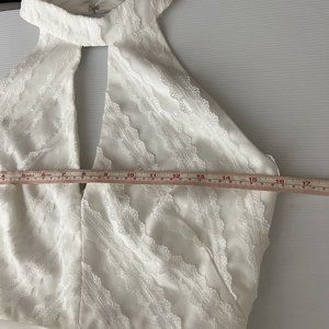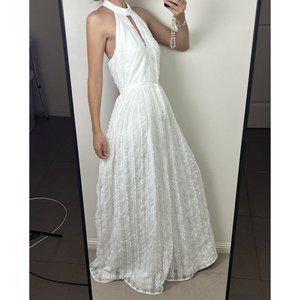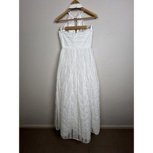 Monique Lhuillier White Lace Formal Gown Wedding Dress Keyhole Halter Size 8