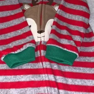Super soft and cozy! Red and gray Striped, zip up footed sleeper pajamas.