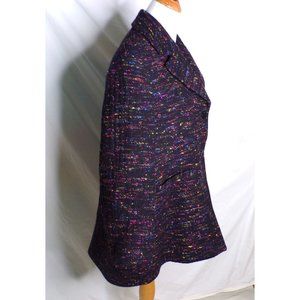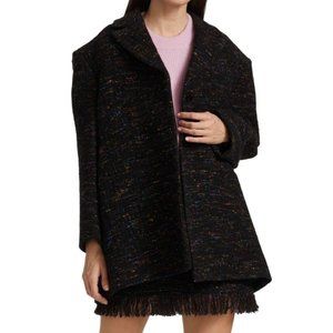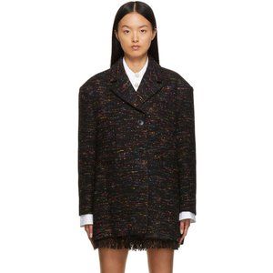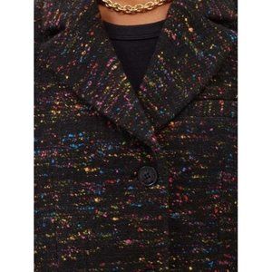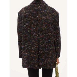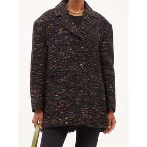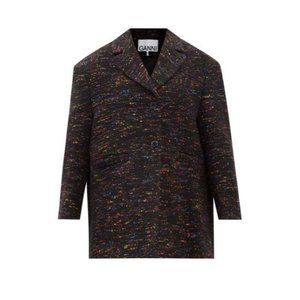 Ganni's black coat is tailored from a blend of recycled wool spun with flecks of multicolored yarn to a wide, boxy fit with padded shoulders. With an oversized silhouette, this boyfriend-style jacket is crafted of a thick tweed with rainbow weaving for a playful look.