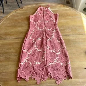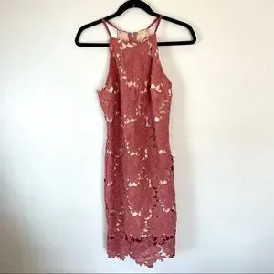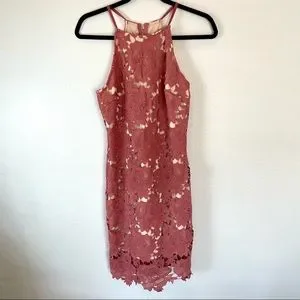Akira Chicago Black Label High Neck Pink & Nude Lace Body-Con Dress Size Medium