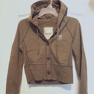 Hollister-Cotton Cropped Jacket- Juniors Large-Hooded Sweatshirt Drawstring
