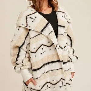 New Cozy Oversized Teddy Hooded Cardigan Sweater Coat / Western Southwest
