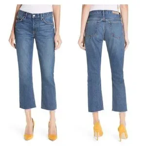 A stylish pair of jeans from GRLFRND is an asset to your On-Trend Denim Collection. Features: Crop Style, 5-Pocket Style, Zip Fly w/Button Closure, Frayed Raw Hem and Amazing Fit. Last pictures show style of jeans.
