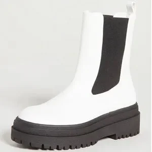 A bold, timeless accompaniment for jeans and dresses alike, these two-tone Good American boots have a combat-inspired chelsea silhouette and a substantial lug sole.