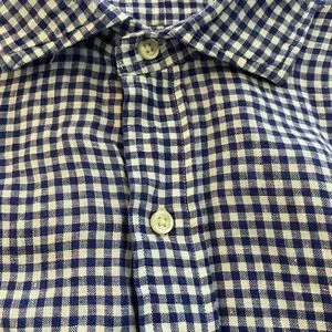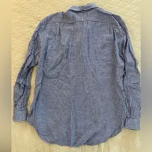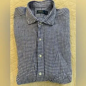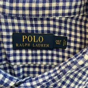 POLO RALPH LAUREN Small Gingham Check Linen Sport Shirt in Blue Size 2XLT $125