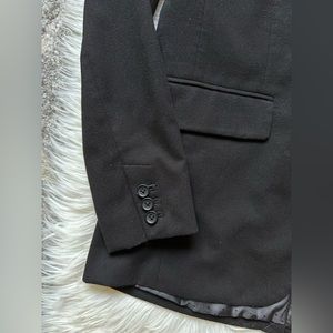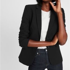 Banana Republic black long & lean blazer. Long, slim fit. Single button closure. Front flap pockets. Polyester/rayon/spandex. Fully lined. Soft with minor stretch. Size 6. Gently worn, great condition.