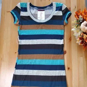 She's Cool -Junior Stripe Short Sleeve Shirt Dress Crew Neck Size JR S