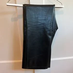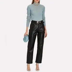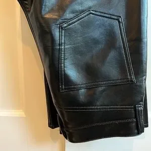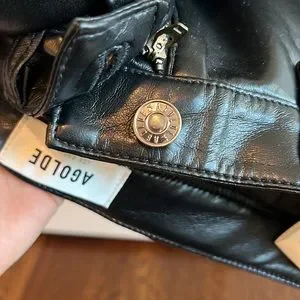 AGOLDE Recycled Leather Relaxed Boot Pant in Detox, Size 27, 50% recycled leather, 30% polyurethane, 10% viscose, 10% poly, Made in USA, Dry clean only, Zip fly with button closure, 5-pocket styling, Leather fabric, 14" at the knee breaks to 15" at the leg opening, in like-new condition