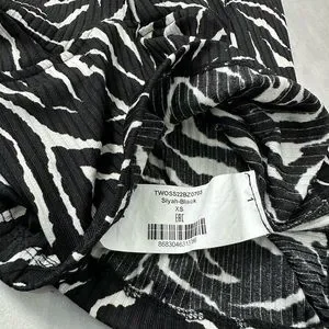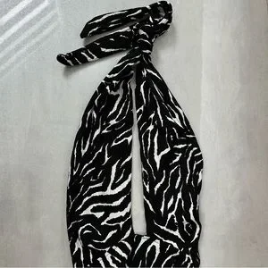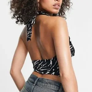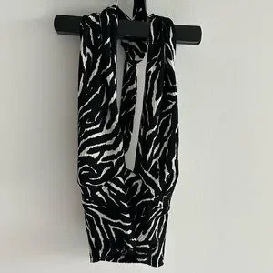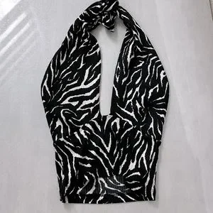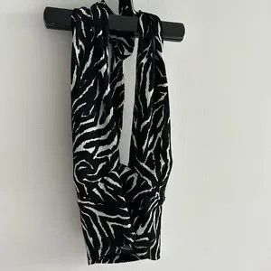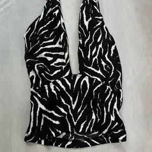 Black and white sleeveless plunge v-neck top by Trendyol (from ASOS) zebra print, halter neck, open tie back, cropped length