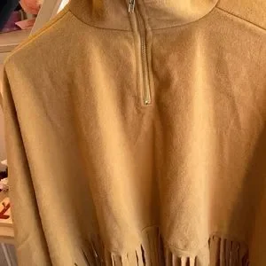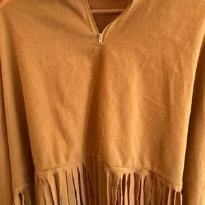 Unique, fashionable fringed poncho, cropped top. Poncho style with sleeves. Size M. Polyester… NWOT.