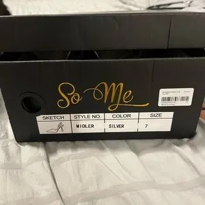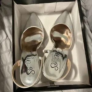 Brand new, never worn silver heels. Still in box.