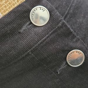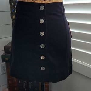 NWT. Small texture corduroy mini skirt. Waist flat is approx 13". Length flat is approx 15.5". Silver functional buttons.