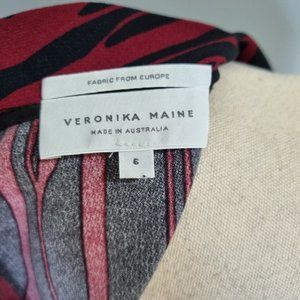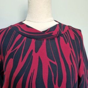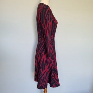 Veronika Maine Black & Red Stripe Long Sleeve A-Line Dress Size 6