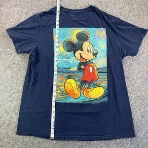 Disney Mickey Mouse Van Gogh's Starry Night Womens Navy Blue T-Shirt Size L