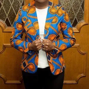 NWT Geometric African Print Blazer - B1473 Blue & Orange