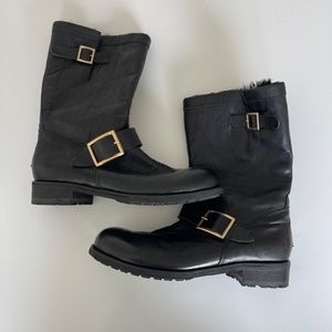 Jimmy Choo Biker Buckled Faux Fur Black Boots