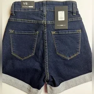 Fashion Nova women’s denim shorts size 1/2 closer to 1. NWT high waisted style