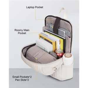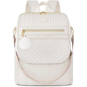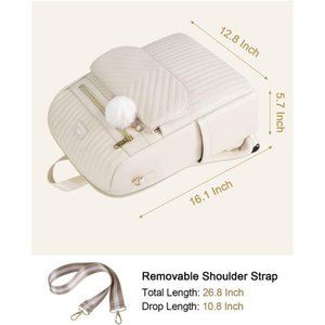🧿🌷PU Vegan Leather: This laptop backpack for women is made of water-resistant PU leather with reinforced quilted stitching, bright gold hardware, durable polyester lining. Delicate pendant designed for fashion appearance and padded shoulder straps for comfortable. Please note that the detachable long shoulder strap is made of canvas