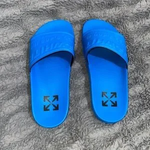 SIZE 38 LOGO-EMBOSSED HF SLIP-ON SLIDES IN BLUE