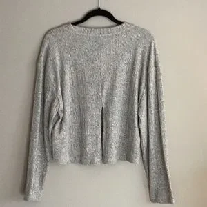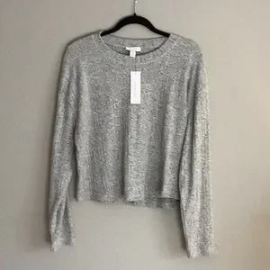 NWT light gray ribbed lightweight top. Crew neck long sleeve size 12