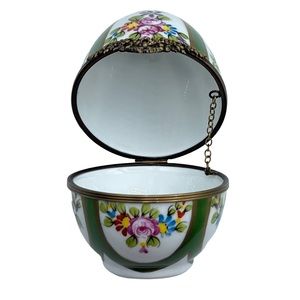 Vintage Limoges France Peint Main Large Easter Egg Flower Trinket Box Ltd Edt