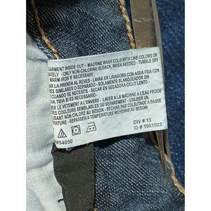 Other: 5 pocket design; Back pockets have envelope flaps with button closures; Zip closurew tih 2 buttons above; Straight leg; A little stretch; High waist
