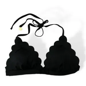 A simple and pretty triangle bikini top, detailed with scalloped edges.