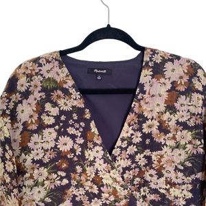Madewell Drawstring Faux-Wrap Floral Mini Dress Size Medium