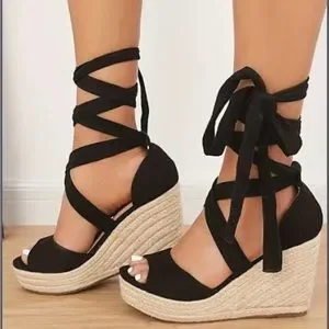 JustFab Isla Tie Up Espadrille Wedge Heels Sandal Size US 8 / EU 38.5