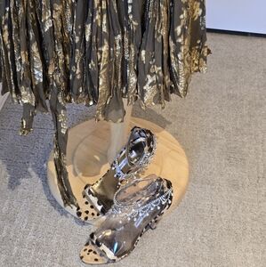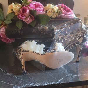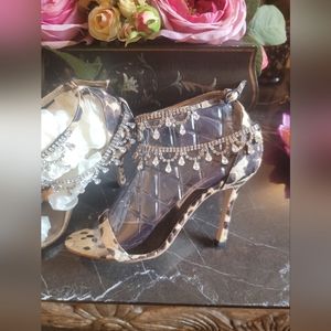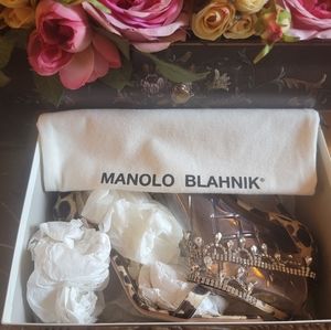 Gorgeous Swarovski encrusted Manolo Blahnik Houristra RARE Silk Leopard 4 inch heels