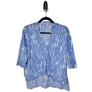 Very good preloved condition. Patrizia Luca lightweight cotton blouse. Slightly oversized. Ties in the front. Elbow length sleeves. No rips or stains. Sizes small. Approximate Measurements flat: L 22”/26”, B 22.5”.