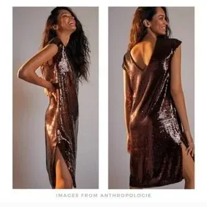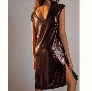 Maeve by Anthropologie Brown Kara Sequined Mini Dress